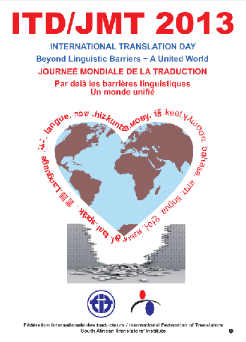 今年國際翻譯日的主題真是恰逢其時,因為2013年正是啟動聯(lián)合國“文化和睦國際十年”(2013-2022年)計劃的第一年。我們是多么幸運——在聯(lián)合國的旗幟下,擁有整整十年的時間通過口筆譯工作加強人們之間的團結(jié),這是讓我們這個職業(yè)得到關(guān)注的一個絕好時機。